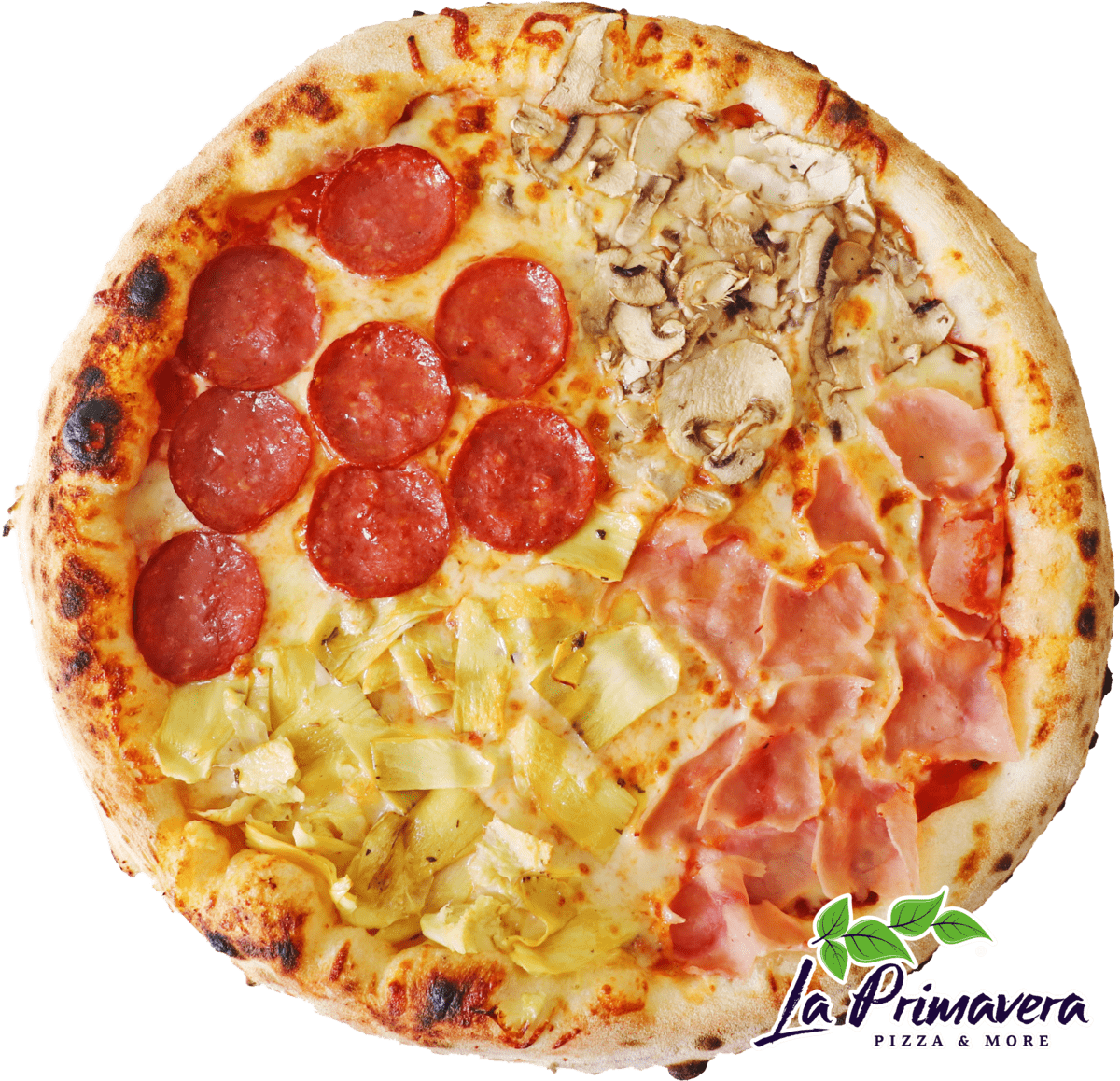 Aluat de pizza / Sos rosii / Topping mozzarella / Sunca presata / Ciuperci / Anghinare / Salam